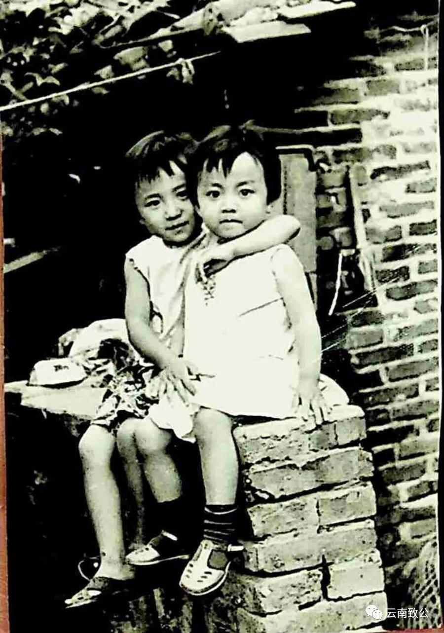 1976年7月,自家厨房门口两姐妹亲密合照