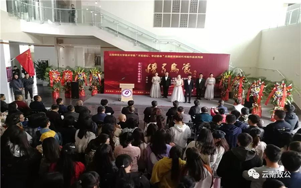 11月25日,昭通致公党员、中国美协会员、国家一级美术师、中国艺术创作院画家黄河"不忘初心、牢记使命"主题教育新时代书画系列作品展--"情系乌蒙"黄河山水画作品展在云南师范大学美术学院呈贡校区拉开帷幕。致公党昭通支部主委陶仁、副主委王邦蓉、党员彭光辉、闵玉吉等到展祝贺。该展共展出黄河70幅山水画卷,展览位于美院1楼展厅内,展览于12月1日截止。
