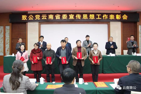12月20日,致公党云南省委宣传思想工作表彰会在昆召开。致公党云南省委副主委、云南中医药大学副校长孟庆红,致公党云南省委专职副主委、省政协副秘书长刘卫红,致公党云南省委原巡视员骆瑞麟,保山市人大常委会副主任、致公党保山市委主委寸时庆,致公党玉溪市委主委周勇出席表彰会并为获奖代表颁奖。刘卫红宣读表彰决定。致公党云南省委宣传处处长李黎伟主持表彰会。