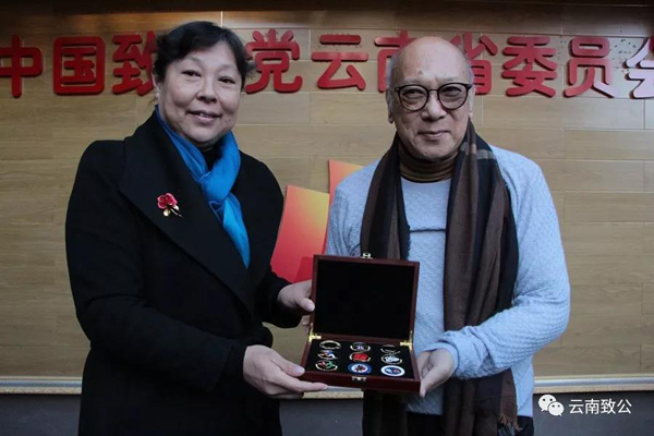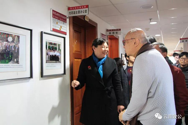 慰问团一行参观了致公党省委机关和文化走廊,刘卫红向慰问团介绍了致公党云南省委的基本情况和近年来在思想建设、参政议政、海外联谊、社会服务、党务工作等。介绍致公党云南省委成立30周年纪念章内涵,并将其赠与陈立人先生。