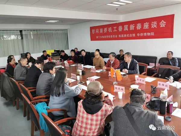 1月6日下午,致公党云南省委专职副主委刘卫红热情接待了由陈嘉庚先生长孙陈立人先生、厦门市集美学校委员会副主任张至方、陈嘉庚纪念馆文物保护科科长周国强、华侨博物院院长刘晓斌组成的"慰问在滇南侨机工眷属慰问团",并在致公党云南省委机关会议室召开了"慰问南侨机工眷属新春座谈会"。云南省归国华侨联合会国内工作部部长李爱民、侨光小学校长段红燕、南侨机工眷属代表出席座谈会。致公党员、南侨机工第三代江雨辕主持座谈会。